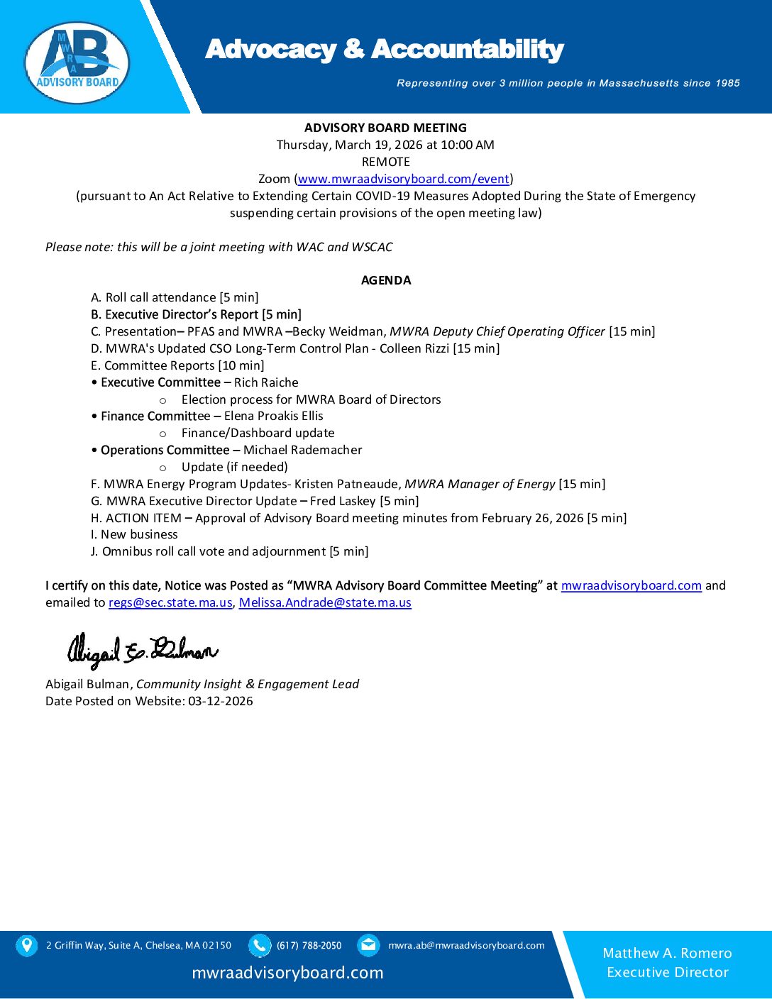 February 2026 Advisory Board Meeting & Public Hearing Agenda